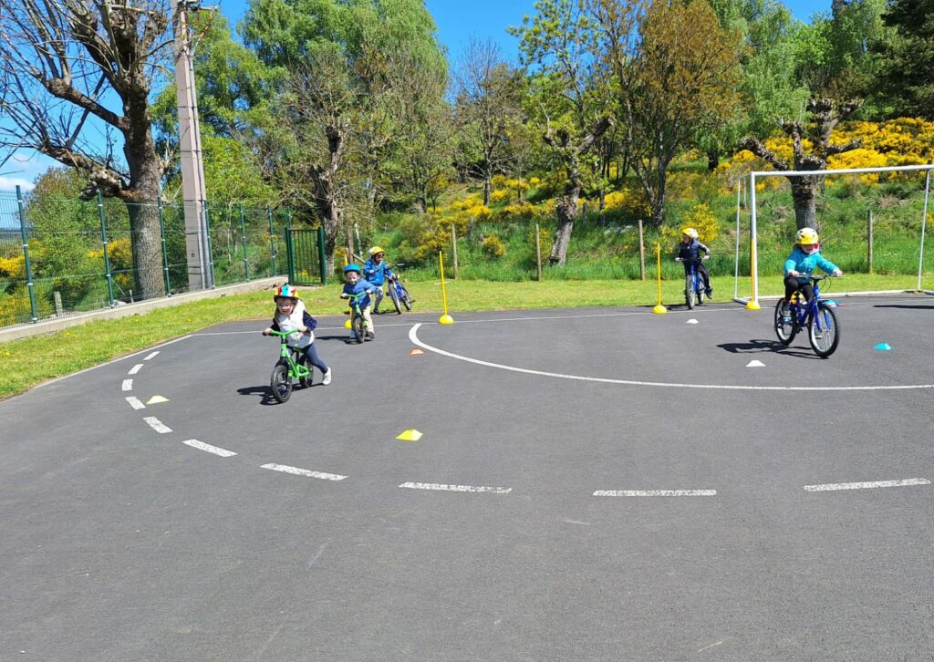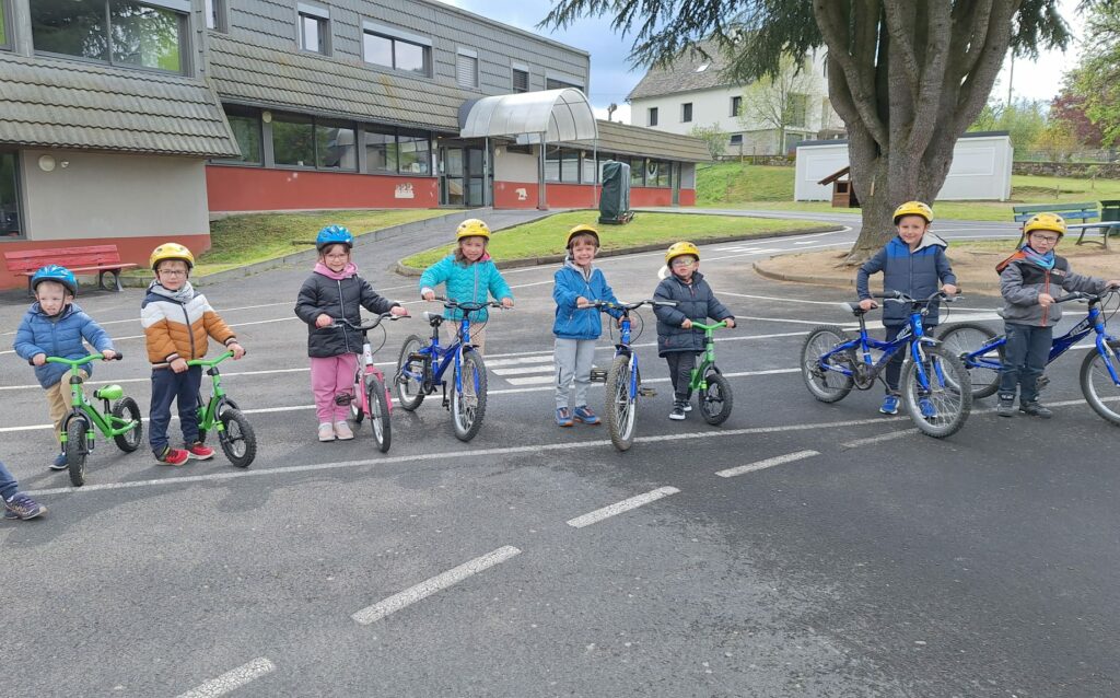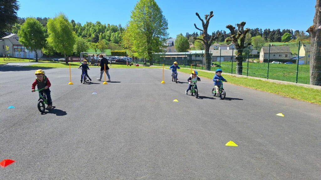 Les élèves de maternelle de l’école publique d’Aumont-Aubrac ont bénéficié de quelques séances de draisienne ou de vélo afin de développer leurs habiletés motrices. Ils ont tous gagné en assurance, trouvé leur équilibre, appris à tourner, à freiner, à rouler sur différents circuits, à franchir des portes. Ils ont également appris les règles de sécurité : bien mettre son casque …