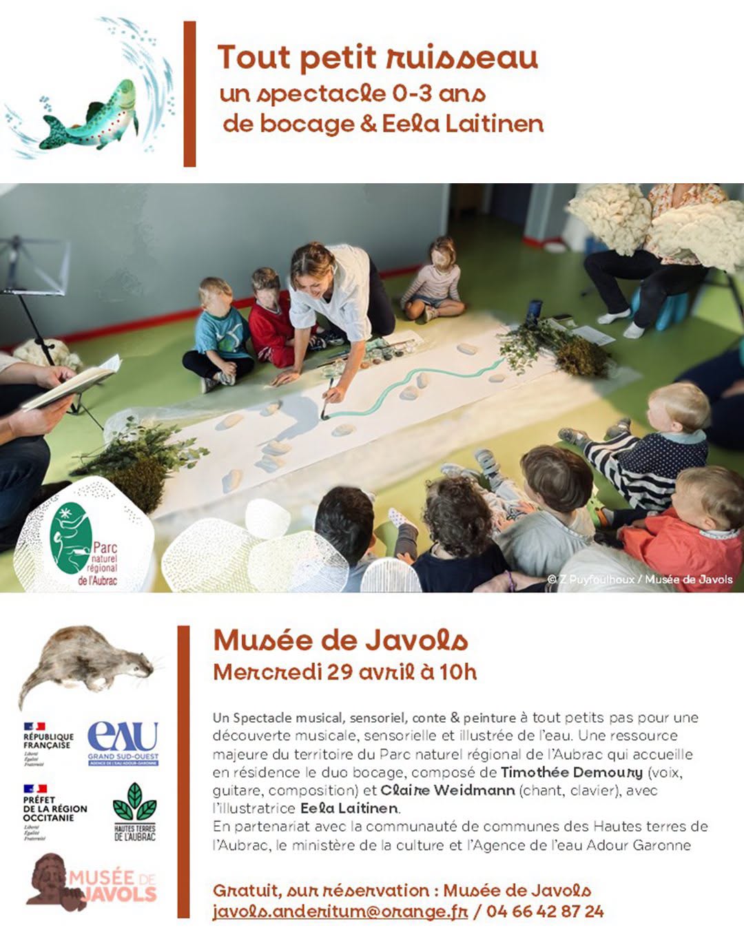 Spectacle "Tout petit ruisseau" au musée de Javols le 29/04/2026 - Commune de Peyre en Aubrac en Lozère